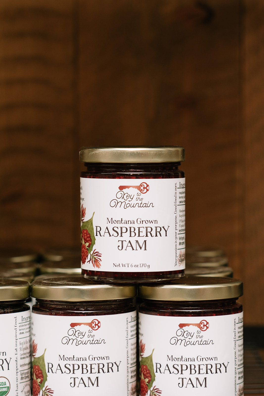 • Raspberry Jam - like eating a ripe raspberry off the bush, only better. The ingredients are simple: Montana raspberries, organic cane sugar, organic lemon juice, pectin, calcium citrate (for jelling) (Raspberries are not certified organic, but are grown to organic standards.)
