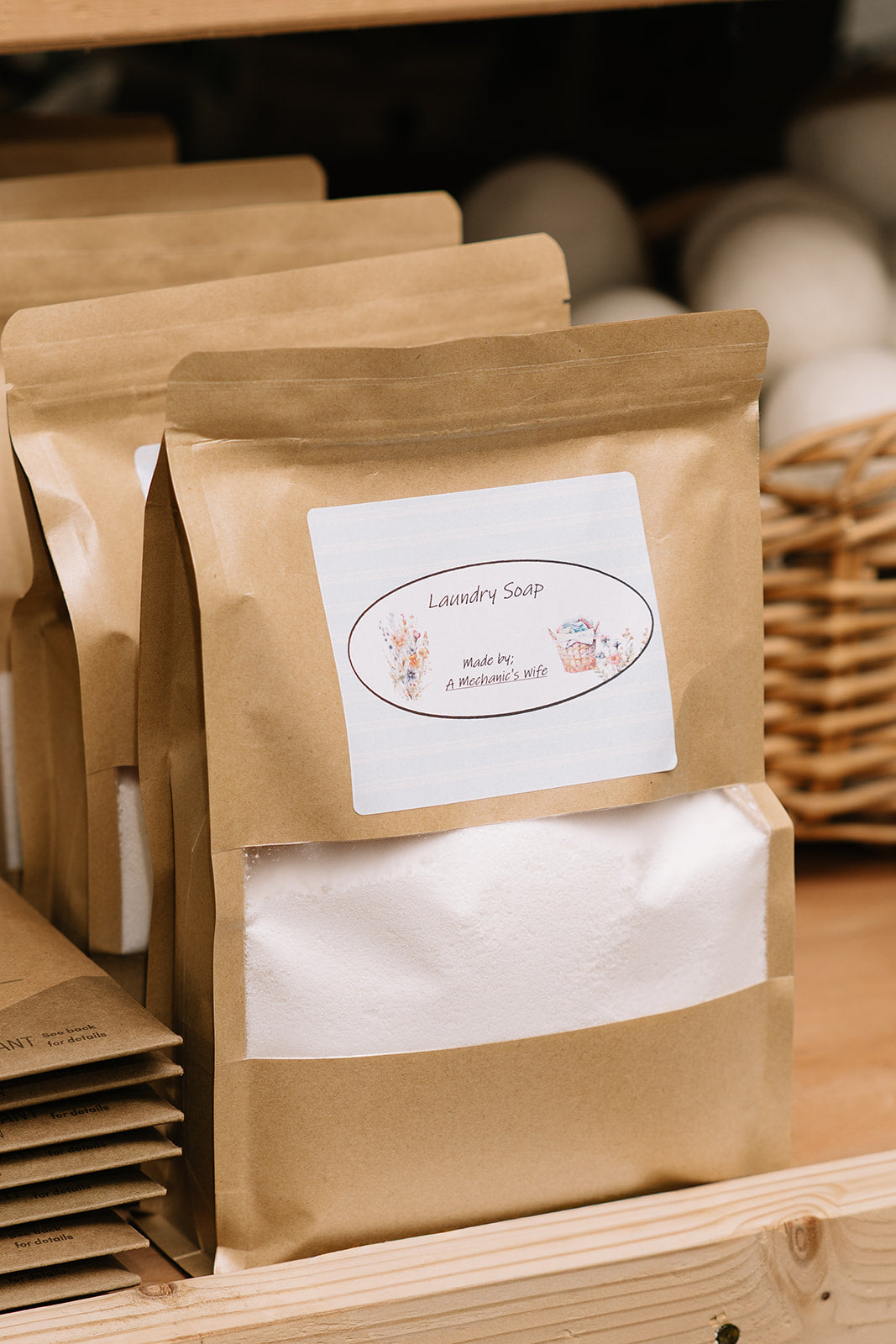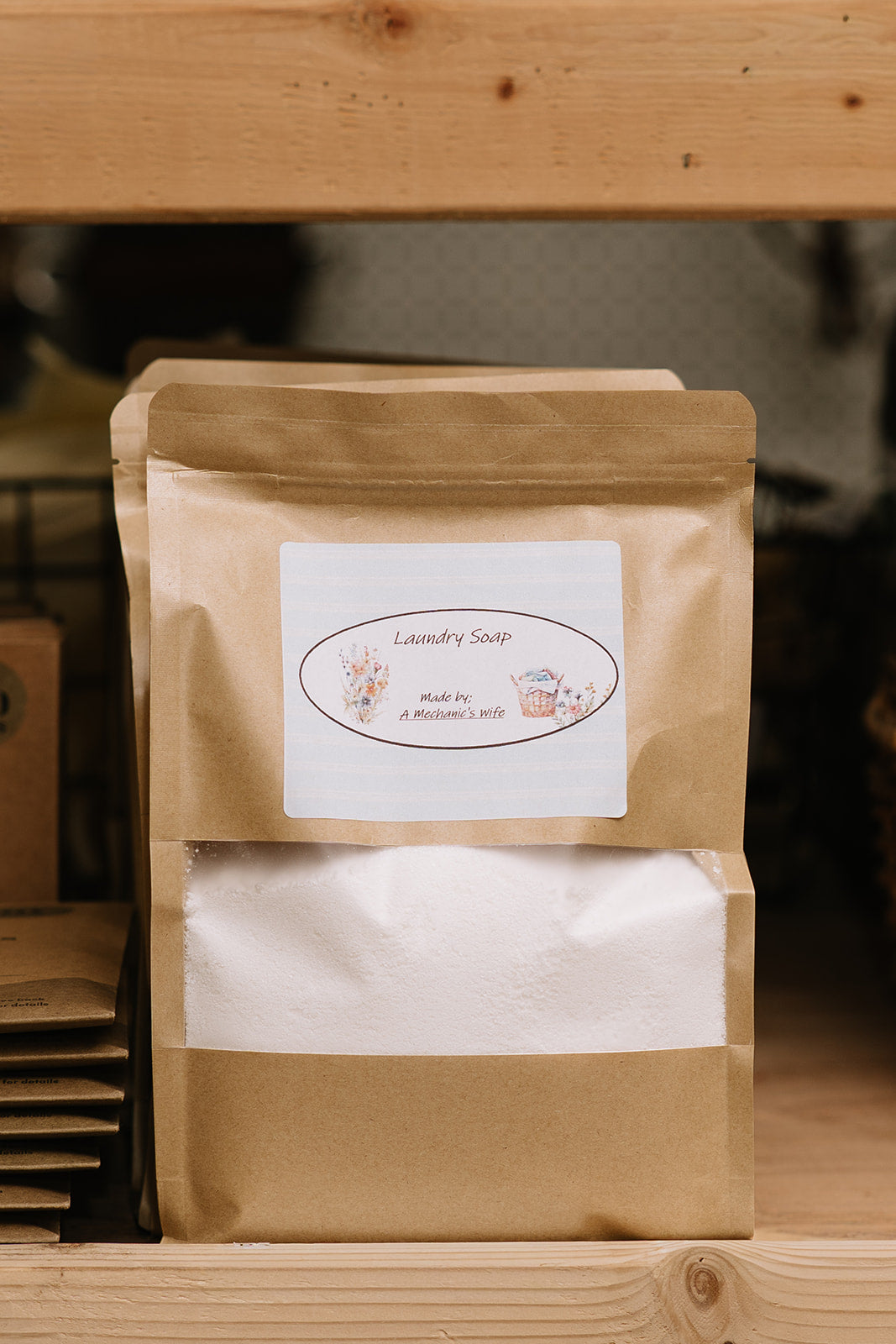 A Mechanic’s Wife laundry soap was created in a home where the commercial products just weren’t cutting it. After years of using the homemade detergents, it was decided that this stuff should be sold! Soon a Mechanic’s Wife was created and a homemade, packaged product was made! This powdered soap is made in small batches, with lots of love and care! We hope you enjoy it as much as we do!