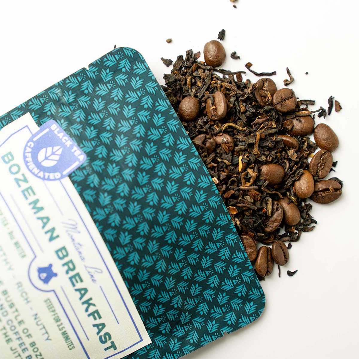 Bozeman Breakfast: Inspired by bustling downtown Bozeman, this tea is a combination of the nutty aroma of coffee with the smooth and steady caffeine perk of black tea for a celebratory blend that energizes without the jitters. Ingredients: Indian Black Tea*, Sri Lankan Black Tea*, Chinese Shou Pu-Erh Tea*, Roasted Coffee Beans, Carob*, Chicory. *organic