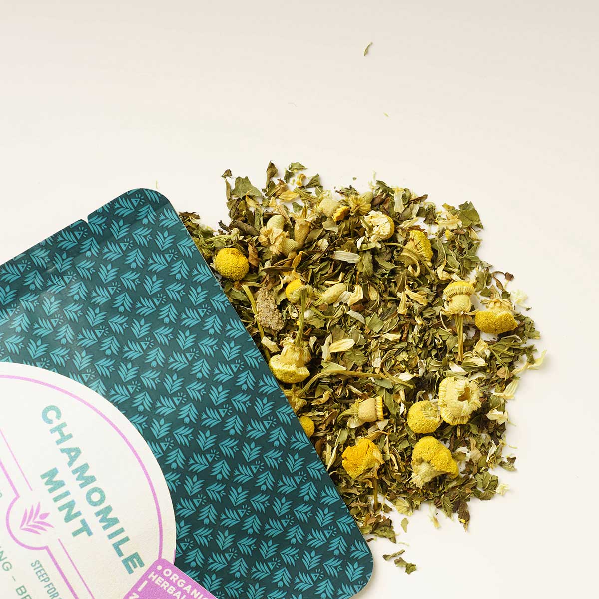 Chamomile Mint Organic Herbal Tea: A spectacular blend of the two classic herbs. Helpful to wind down any evening. Ingredients: Peppermint Leaf, chamomile flowers.